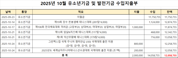 25년 10월 24일까지 유소년기금 현황 자료를 업로드합니다.