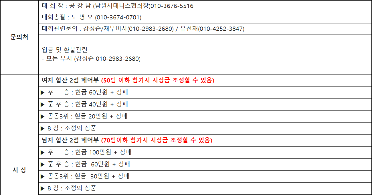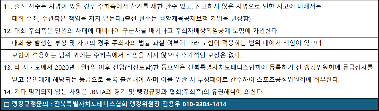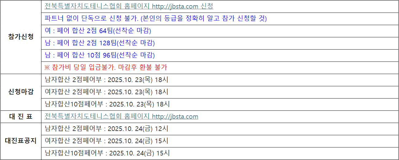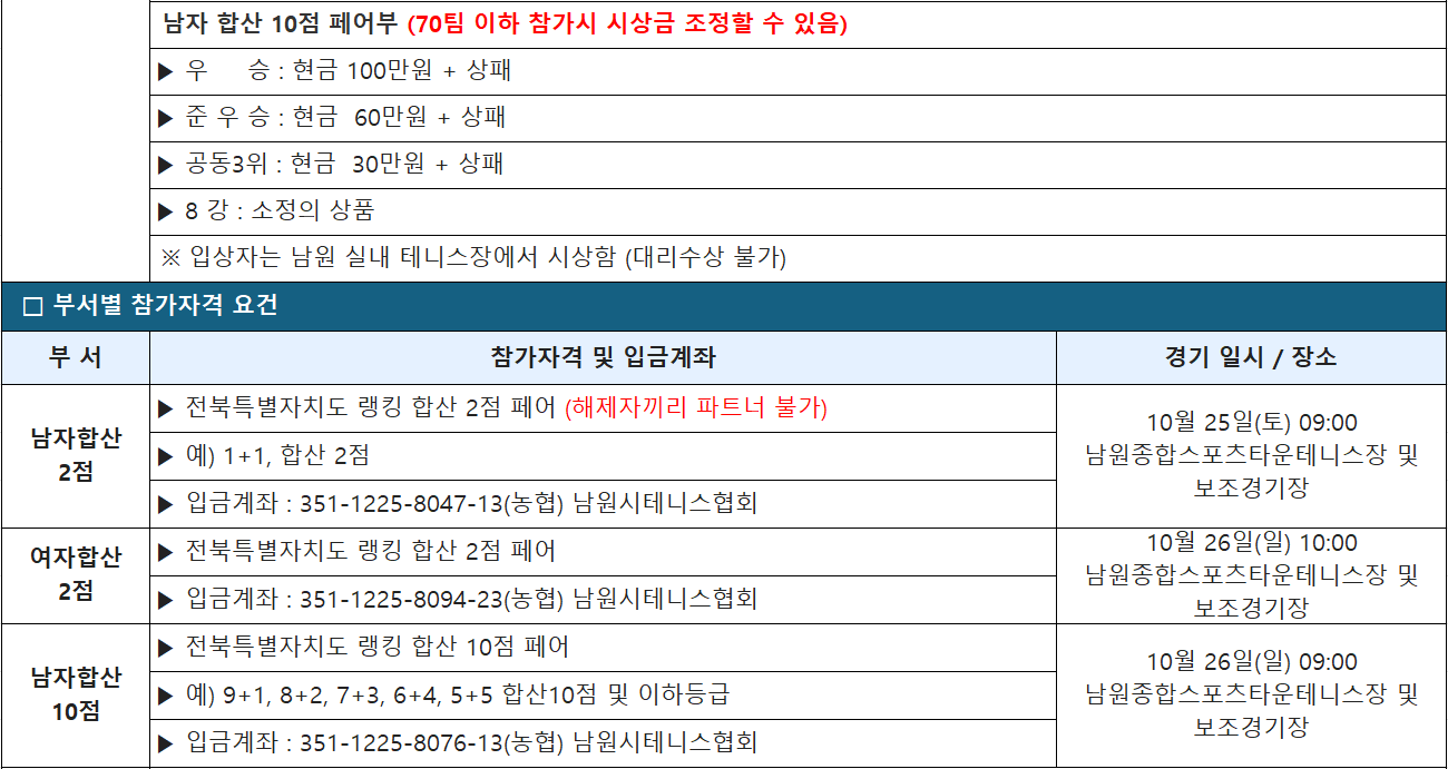 2025년 제9회 남원시장배 전북 동호인 테니스대회 참가선수현황