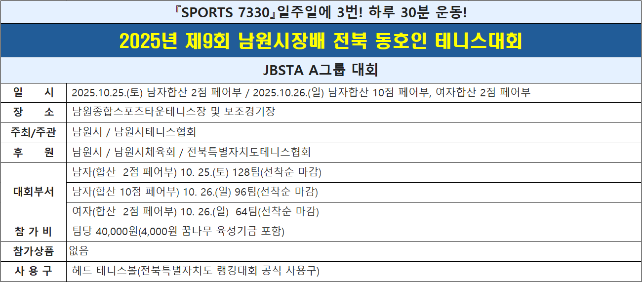 A그룹 2025년 제9회 남원시장배 전북 동호인 테니스대회