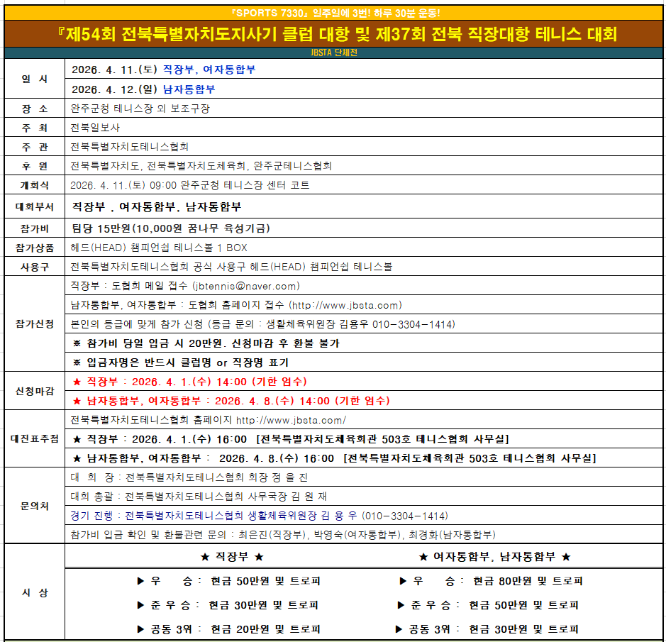SA그룹 제54회 전북특별자치도지사기 클럽 대항 및 제37회 전북 직장대항 테니스 대회
