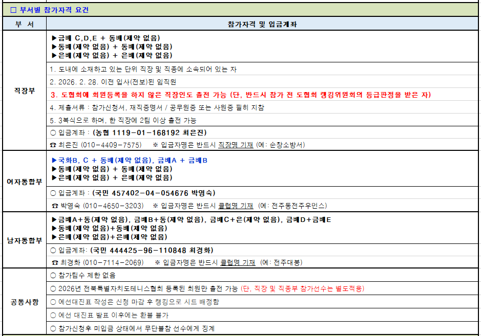 제54회 전북특별자치도지사기 클럽 대항 및 제37회 전북 직장대항 테니스 대회 참가선수현황